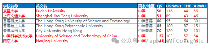 QS相同排位的中国大学: